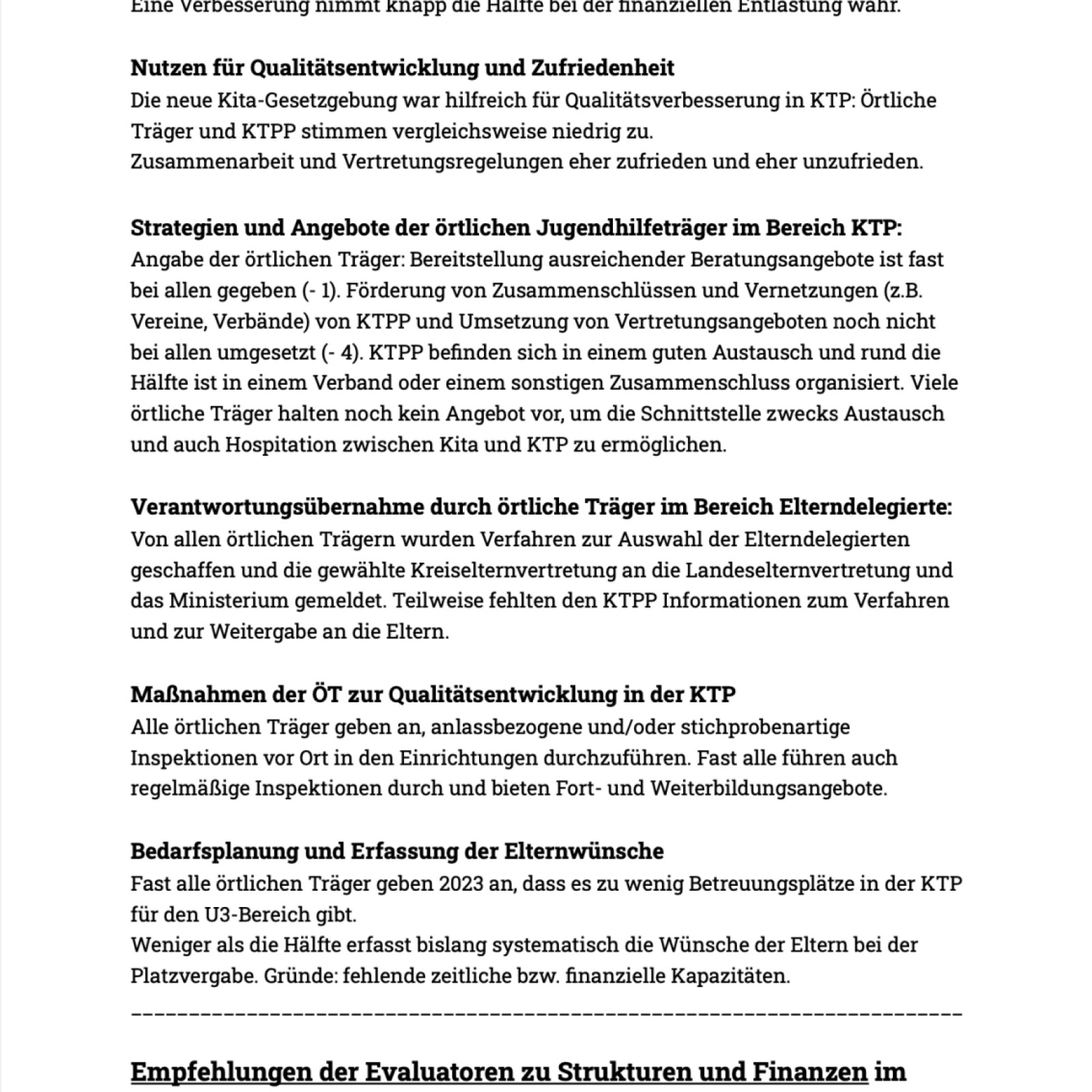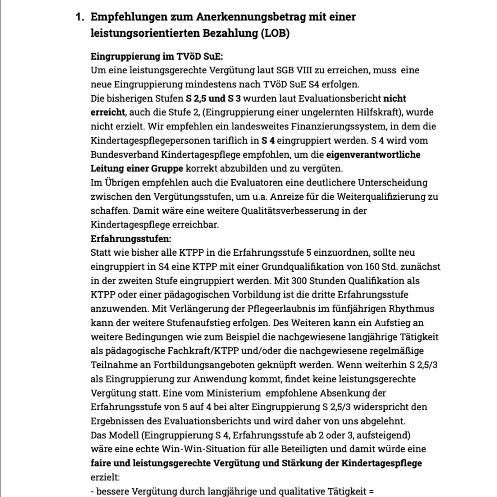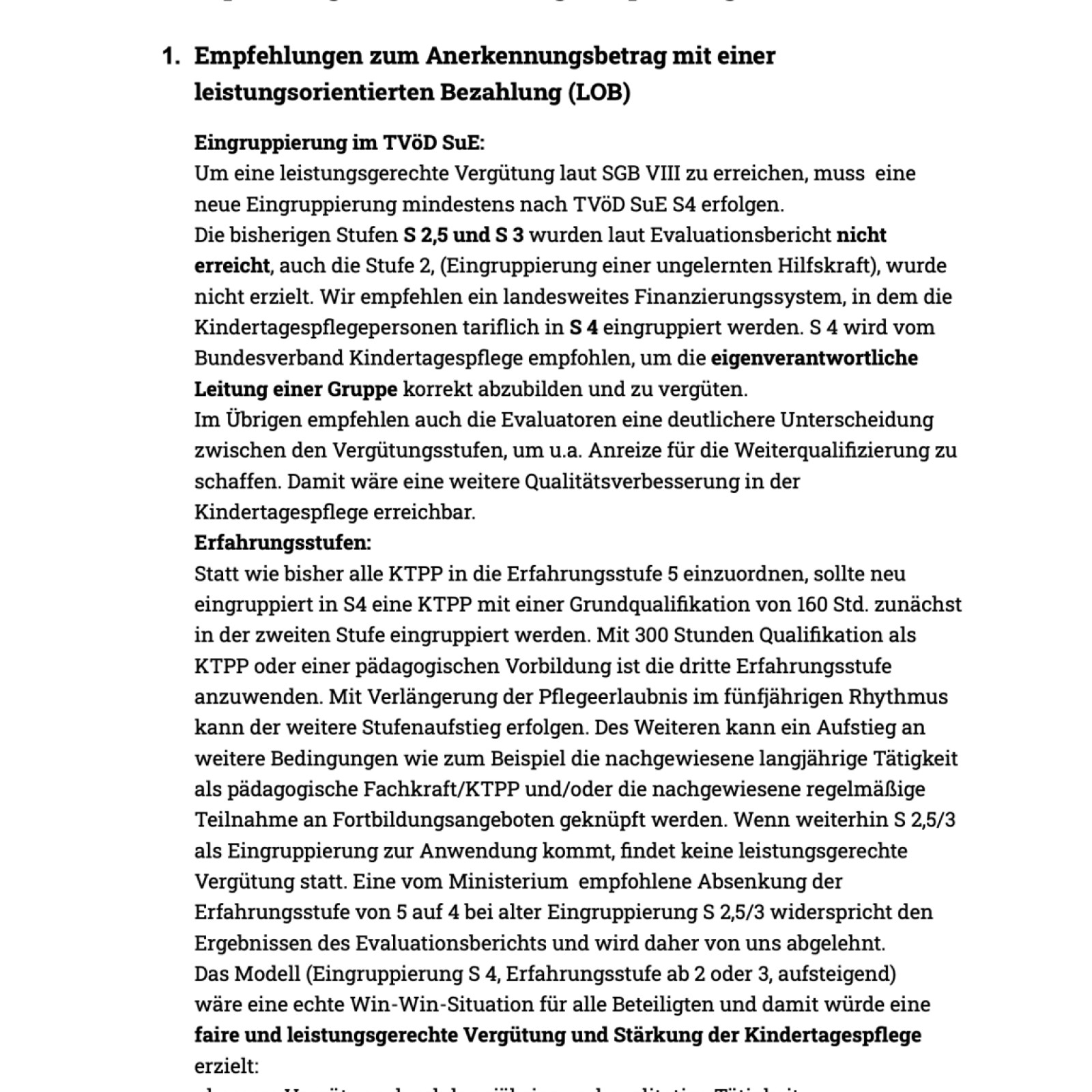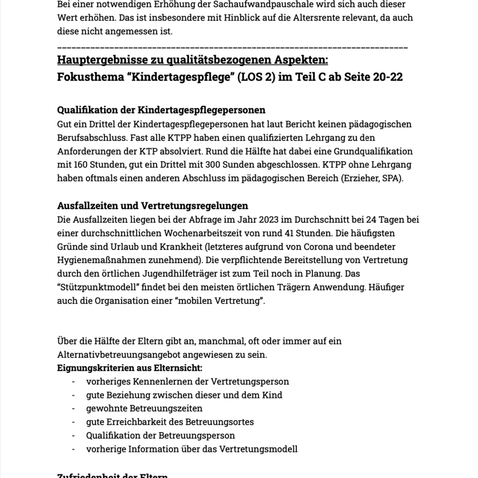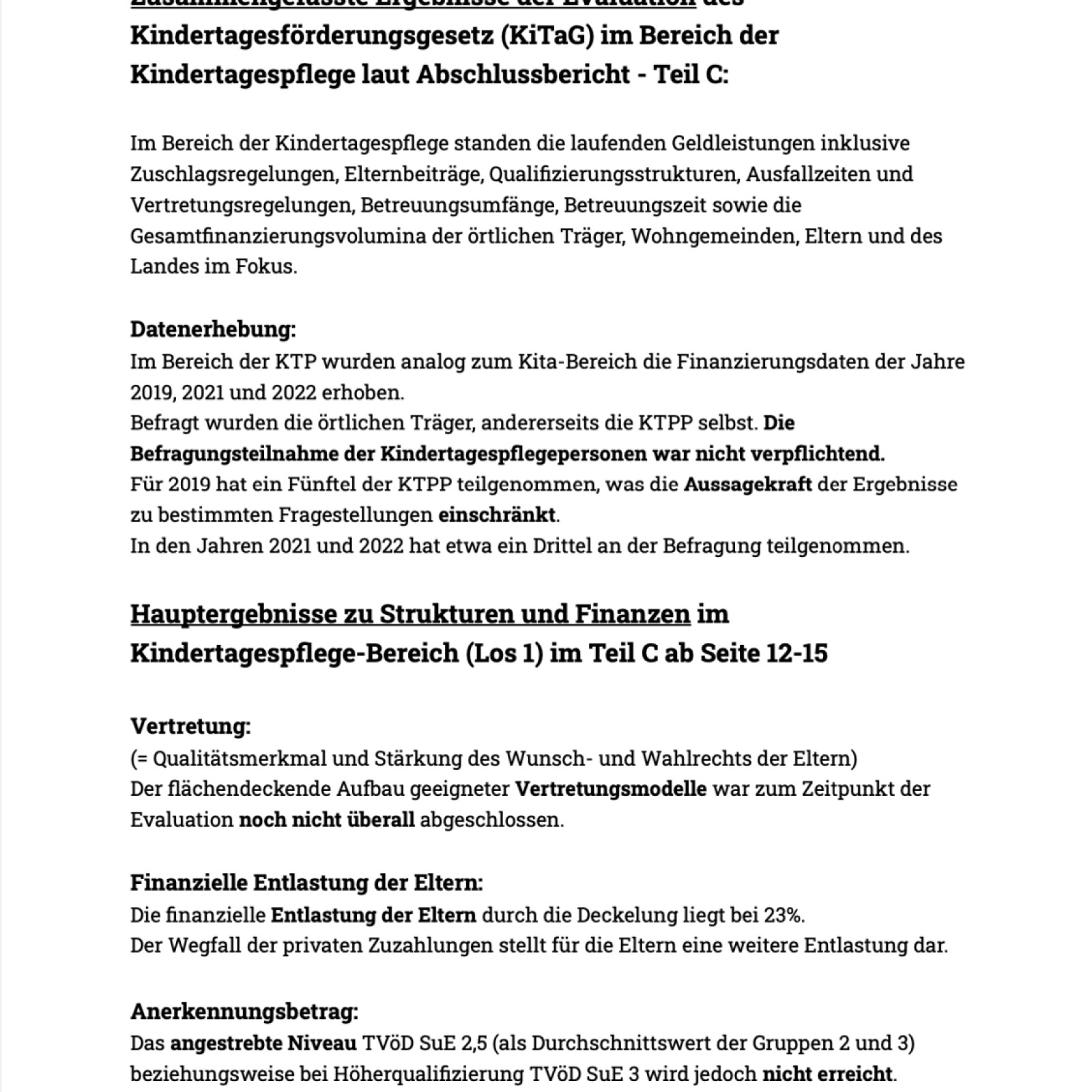 Hier noch die zusammengefassten Ergebnisse der Evaluation im Bereich der Kindertagespflege als Anhang zur Stellungnahme: