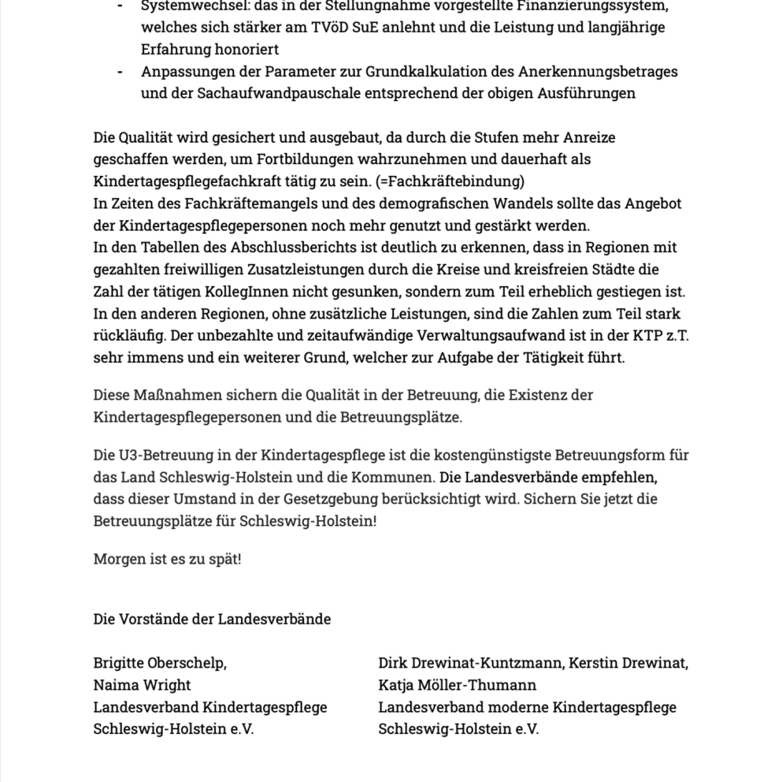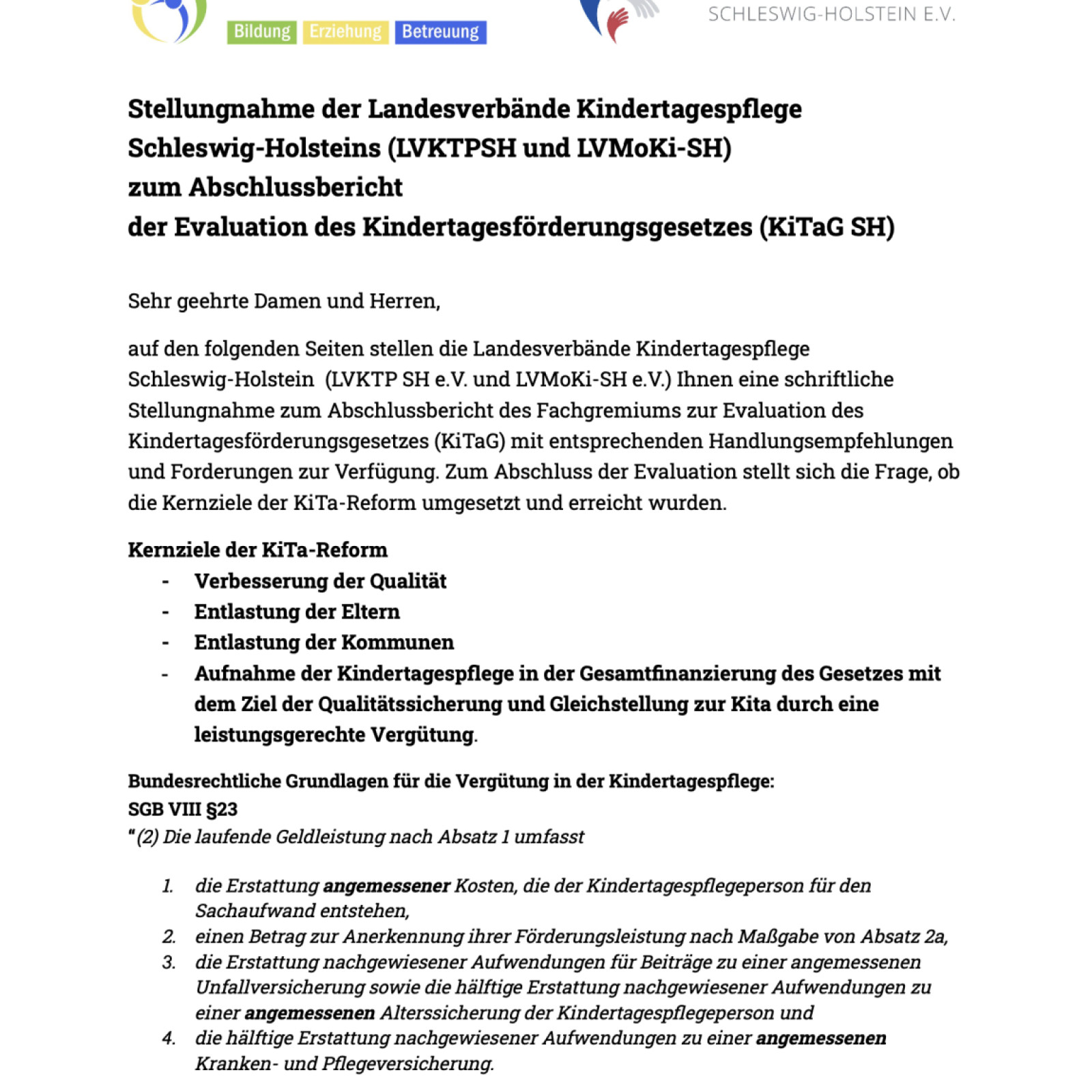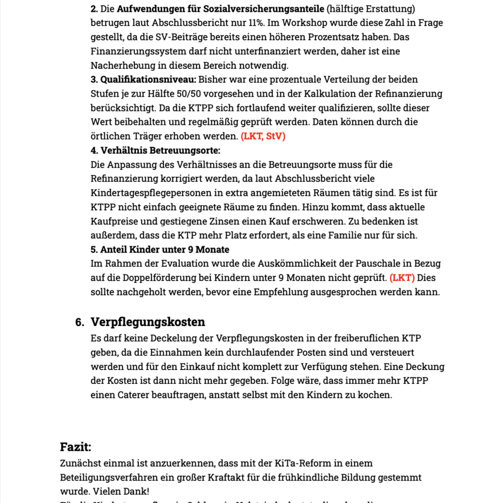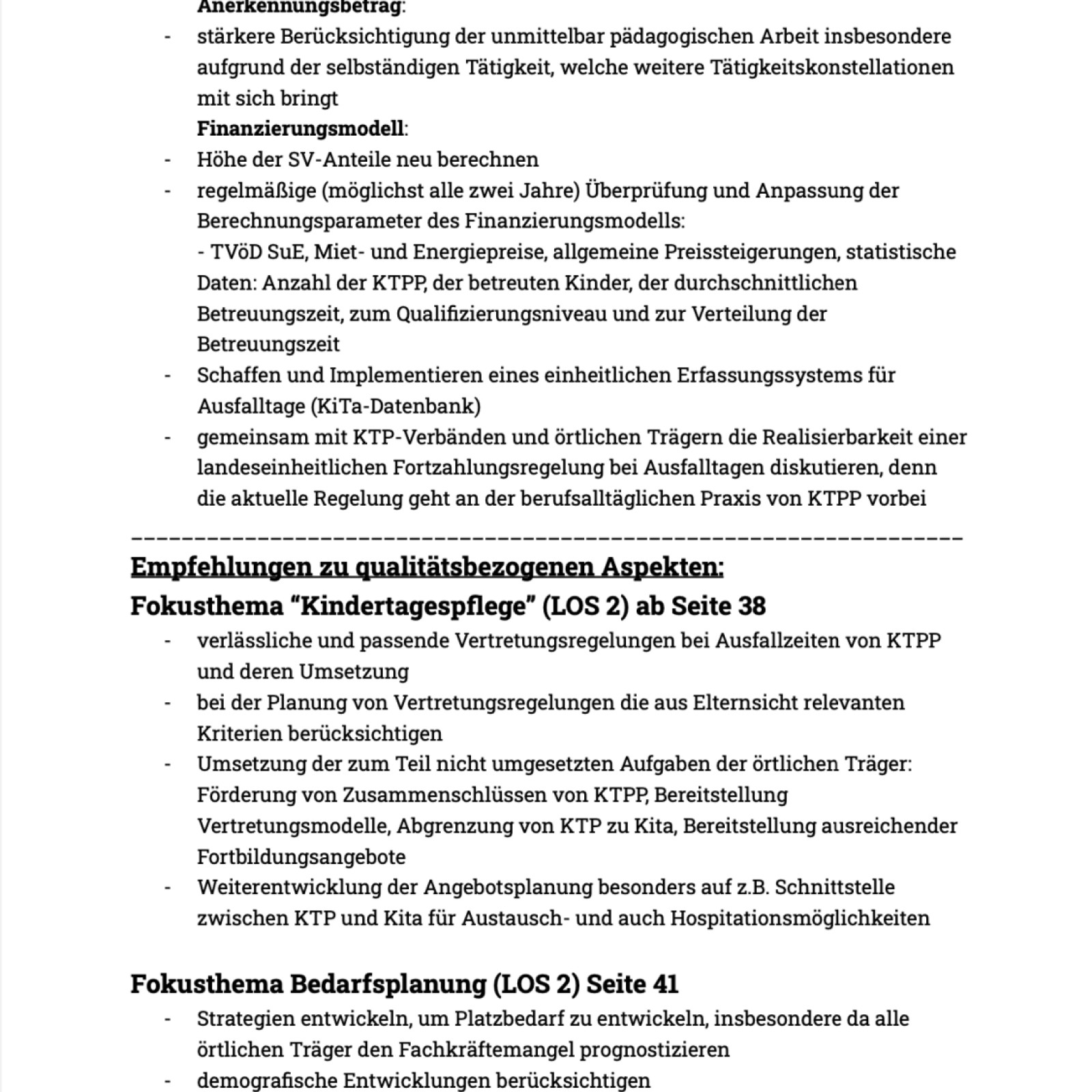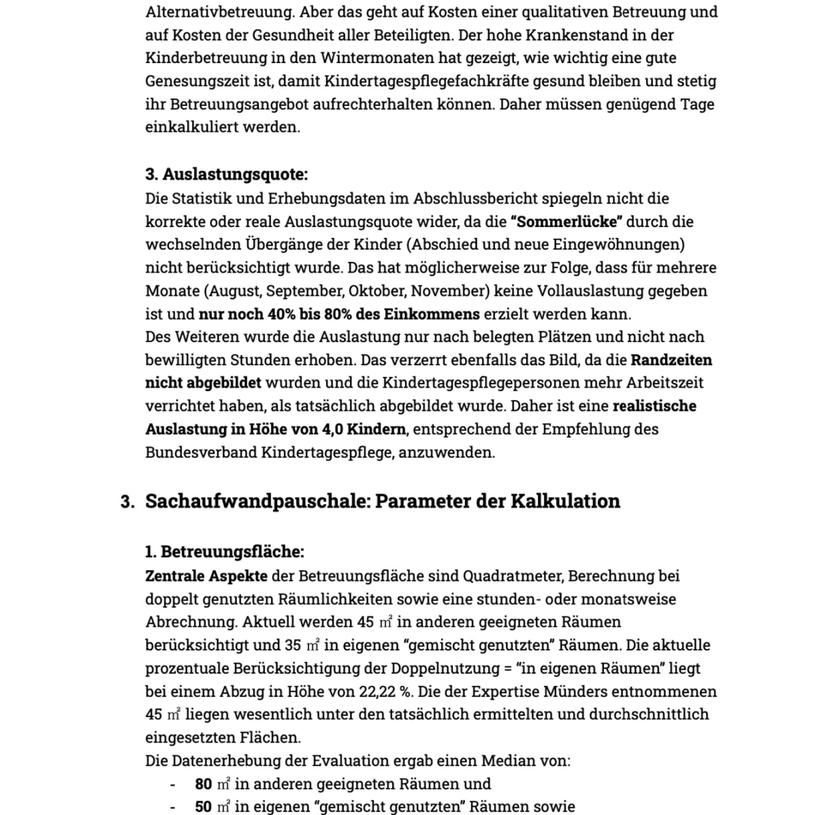 Hier noch die zusammengefassten Ergebnisse der Evaluation im Bereich der Kindertagespflege als Anhang zur Stellungnahme: